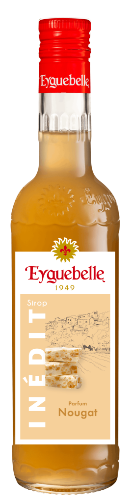 Le Sirop Inédit Parfum Nougat d’Eyguebelle séduit par ses arômes gourmands et sa douceur subtile, apportant une touche onctueuse et délicate à toutes vos boissons.
